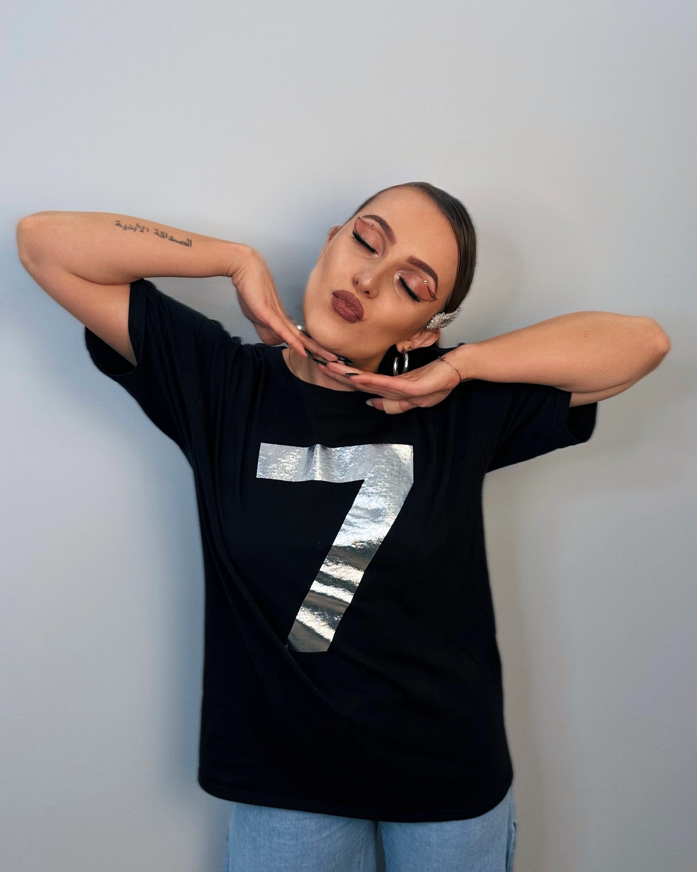 *За да запазите по-дълго магията на 7-цата, препоръчваме пране на 30 градуса, задължително с обърната щампа навътре. Гладенето да се случва отново върху вътрешната част на тениската.